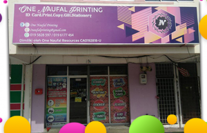 ONE NAUFAL RESOURCES (CA0192818-U) telah mula menjalankan operasi pada Jan 2015 di mana kami pakar dalam perkhidmatan printing secara online. Kami menyediakan perkhidmatan mencetak kelengkapan anda seperti id card , cetak t-shirt, cenderahati , bisnes kad, flyer, brochure, bunting, poster dan sebagainya.